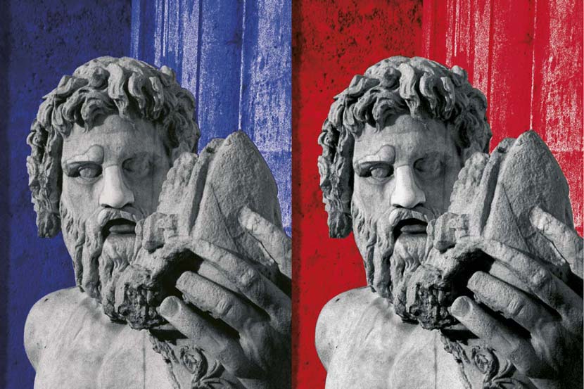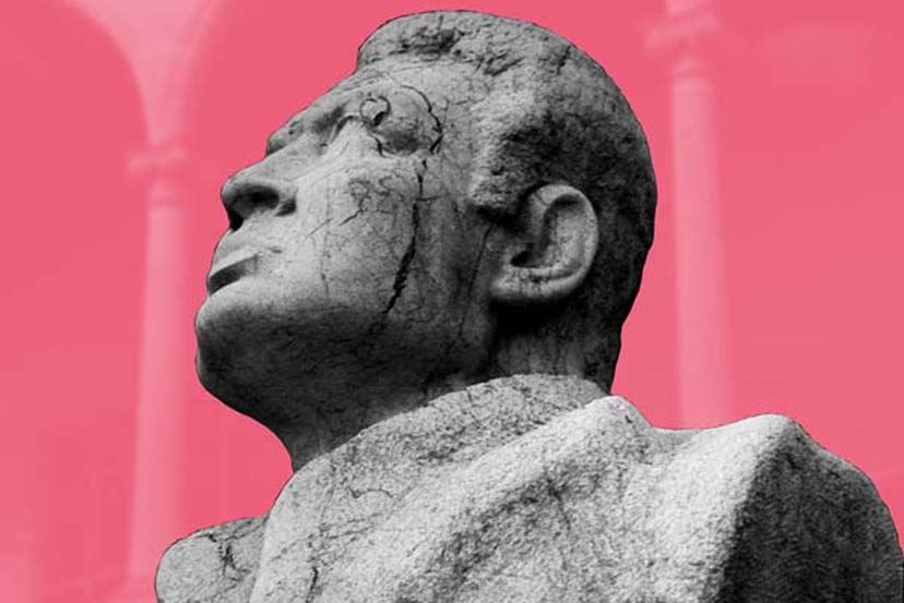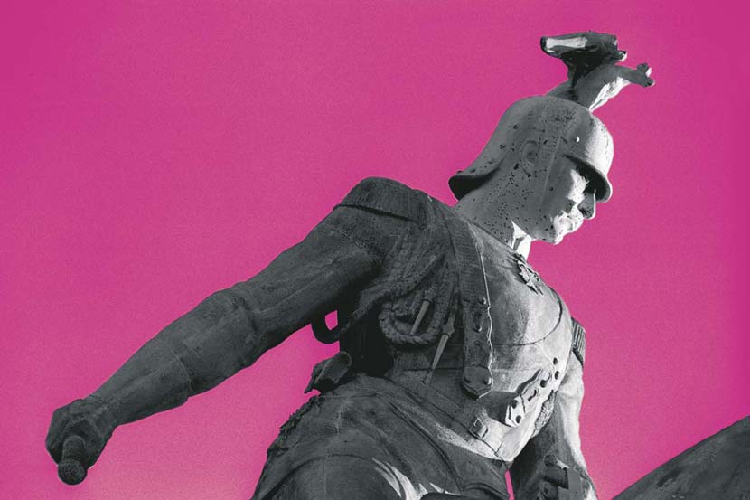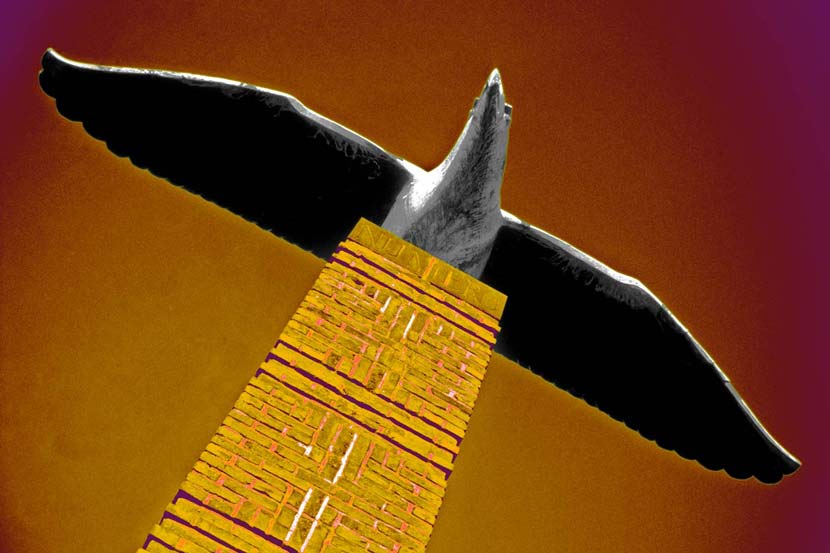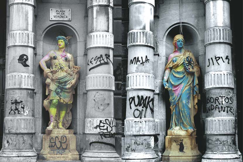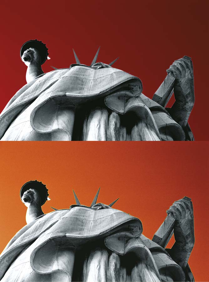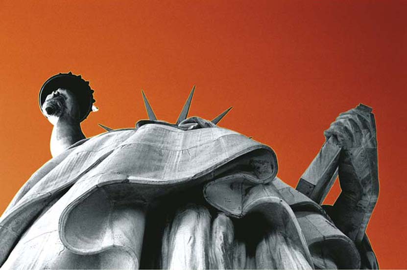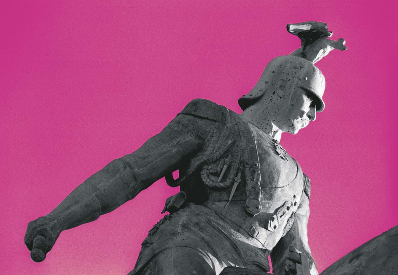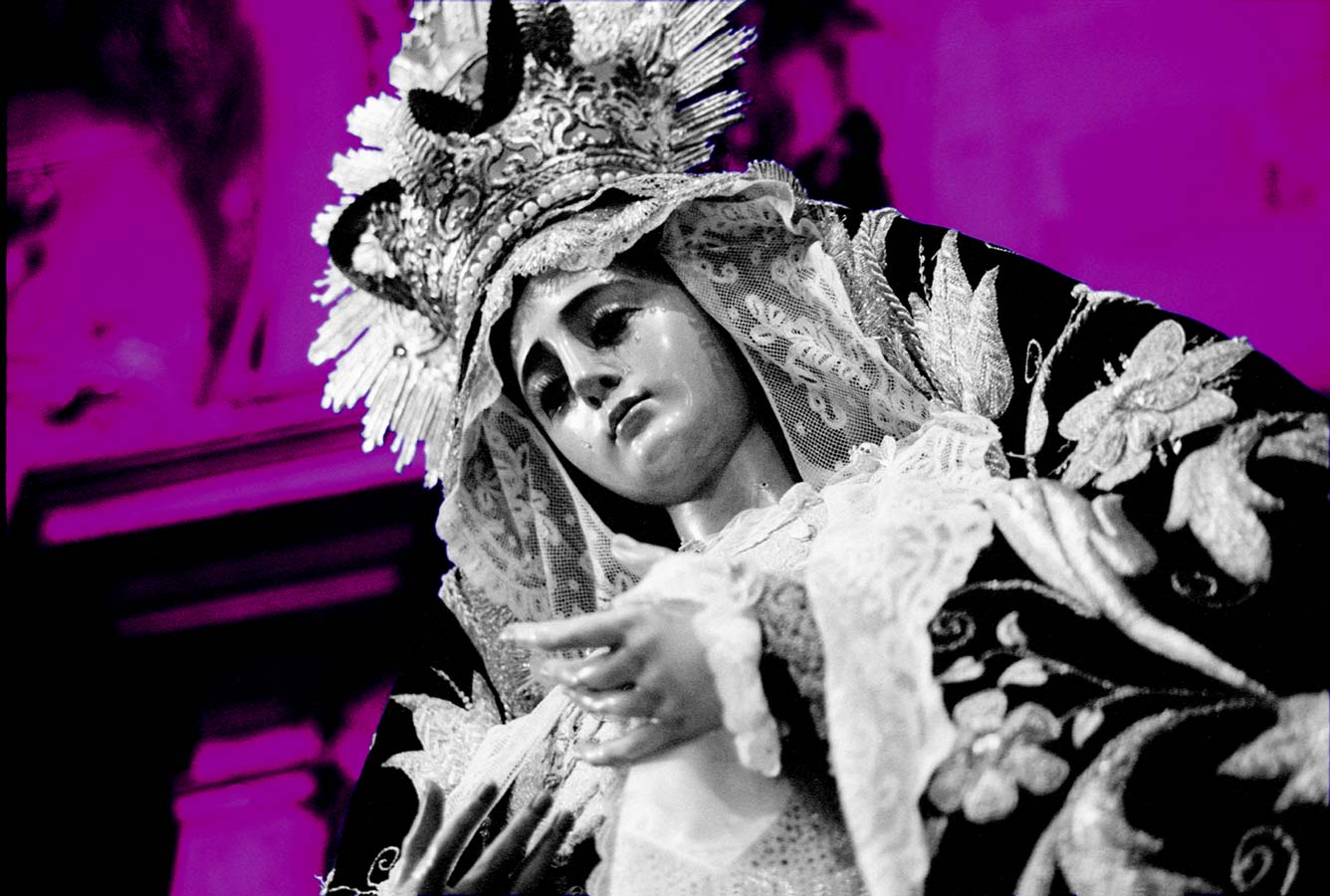 Statues always attracted me. I photographed them, but I never knew how to use the pictures. Then I had the feeling that putting them into an black & white abstraction and dyeing the background with impossible colours could be the solution. This is the result.